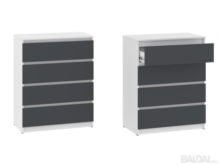Komodos konstrukcijoje yra keturi ištraukiami stalčiai ant patvarių teleskopinių bėgelių, kurie užtikrina tylų ir sklandų atidarymą.